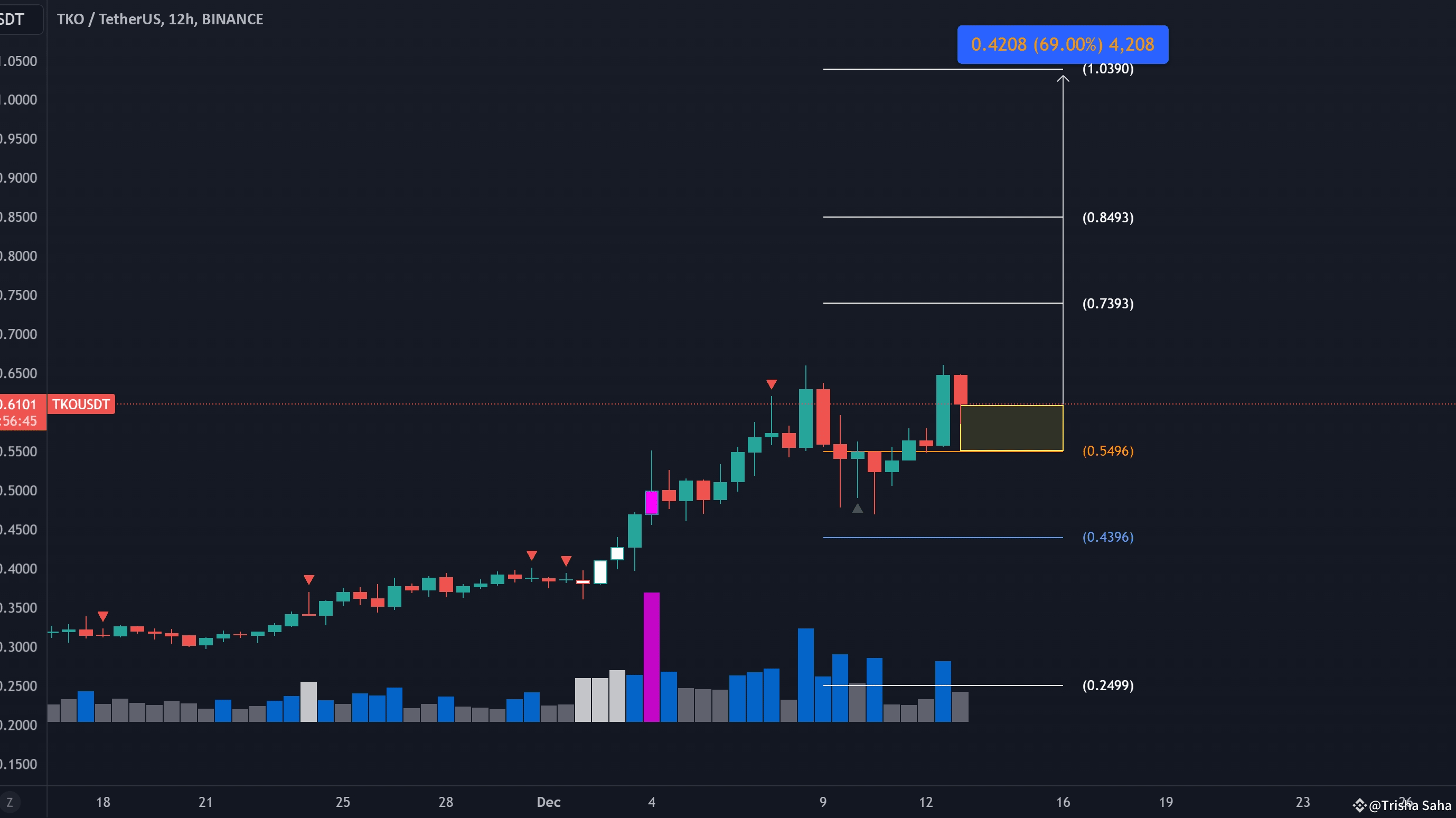 With current momentum, look for a breakout to around $0.73, with an eye on $0.85 as the next target. If it continues to rally, the dream target sits at $1.03. Keep an eye on the support level near $0.55 for potential pullbacks.