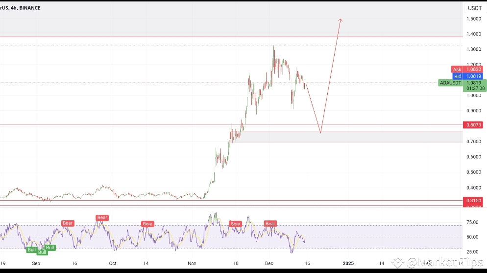 It's about cardano in high time frame , it shows signal to complete it's pullback to 0/7$ zone before take new higher high.