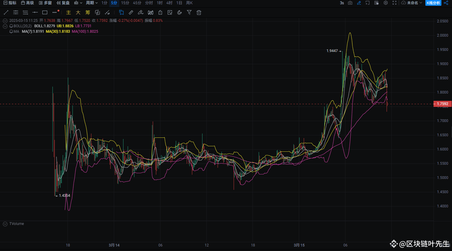 从EPIC的K线图来看,EPIC在 $1.9447 附近形成阶段性高点后,开始回调。目前价格回落至 $1.7592,短期内跌破 MA(30) = $1.8183,表明空头动能增强,行情偏向下行。