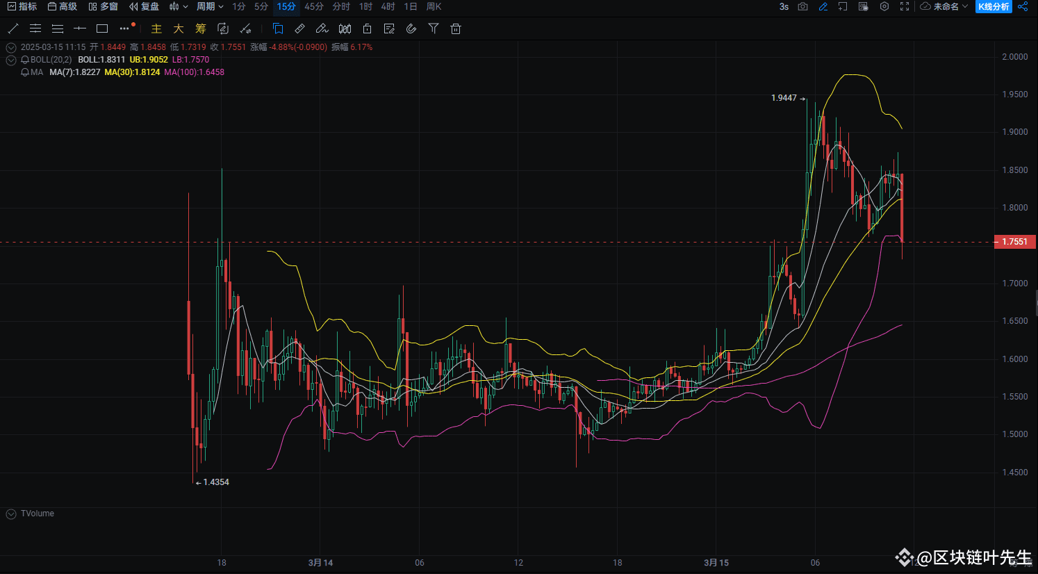 昨日行情显示:价格在$1.800 - $1.820区域多次受阻,形成双顶结构,当前回调符合技术形态。