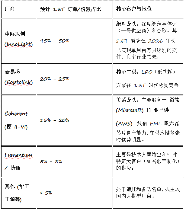 公司1.6T光模块份额: