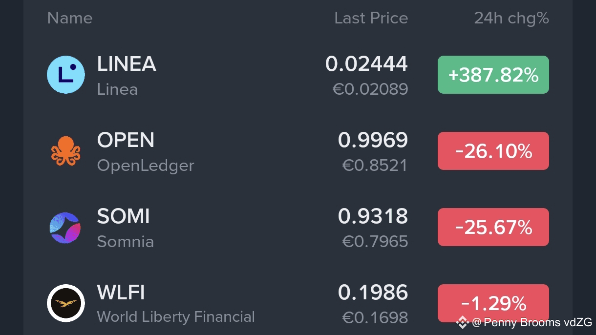 Bro...look at this lineup. LINEA pulling a +387% moonwalk while $OPEN and $SOMI are doing Titanic impressions at -26%. My brain combusts every time I see how every new coin drops into the market like a spy movie plot twist: pump, dump, repeat. 🎬📉📈