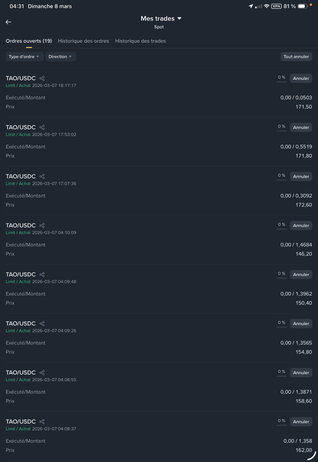 📊 TAO/USDC — MAJ 8/3 Micro-Bénéfices 4 heures 40