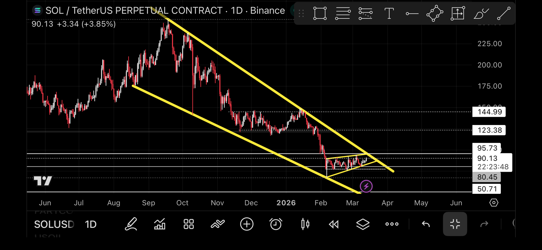 Note:danger zone is bar Sol ne 80$ wala level break kardeya to 50-55$ next target hoga