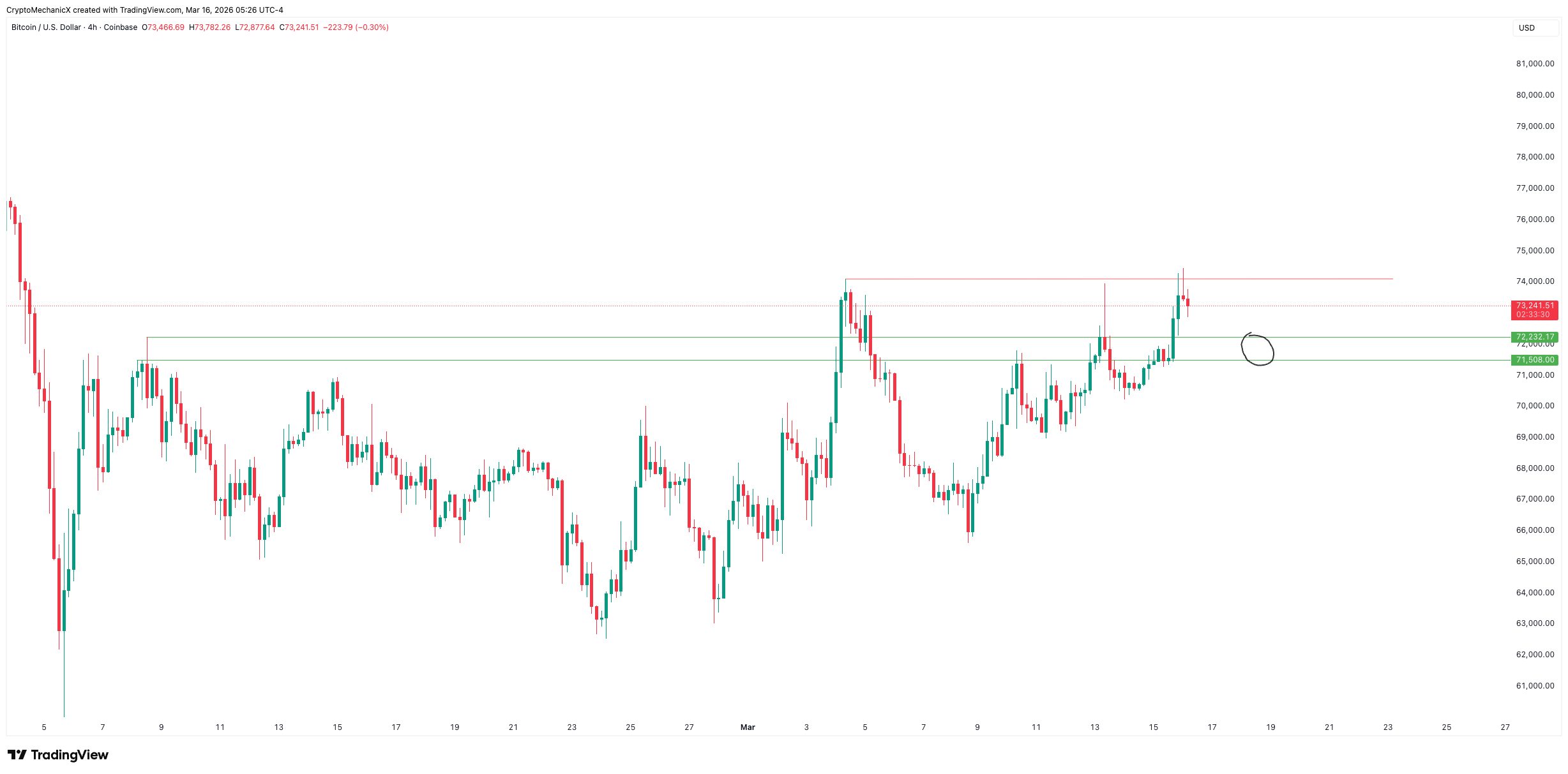 I see $71,500–$72,200 as a good lower-timeframe zone. If the price gives that pullback, I think you can look for an entry there.