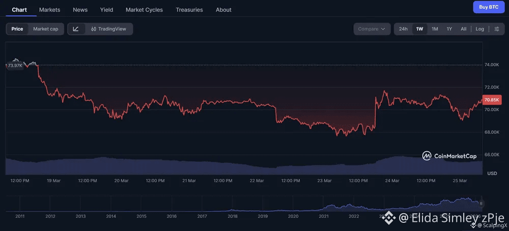 📌 BTC has reclaimed the $70K level, showing that lower prices are attracting buyers again. Even so, the current rebound still looks more cautious than explosive, as price remains in a consolidation phase after the previous sharp drop.