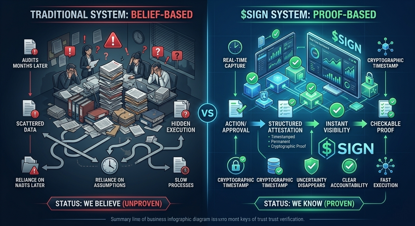 I keep returning to the same thought: most systems today prove what happened only after the fact. $SIGN tries to make the process verifiable while it’s still unfolding. Not loudly. Not dramatically. Step by step. In fast-moving environments where capital moves quickly and trust spans multiple institutions, this approach could become essential. Or maybe it remains a middle layer people acknowledge but do not fully depend on. Either way, it makes me question whether the real problem was ever about policy—or about the lack of a way to follow it into reality.