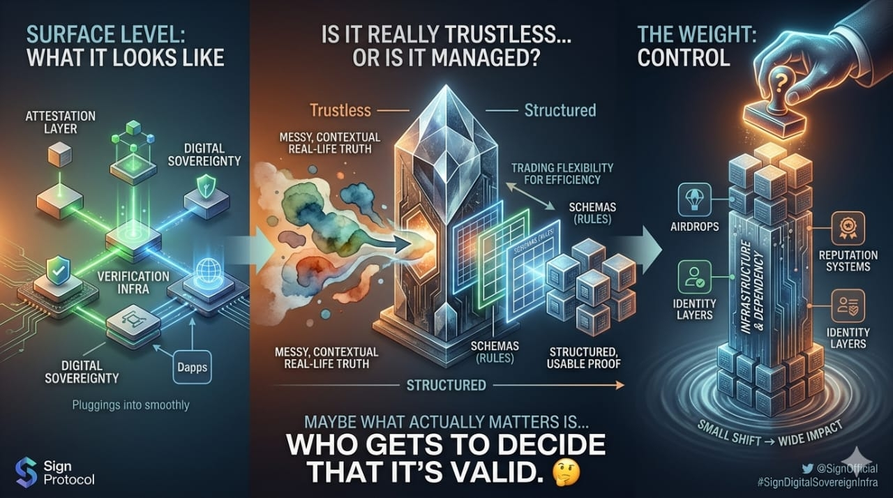 If institutions, governments, or large entities start deciding which schemas are valid, which attestations are acceptable, which sources are trusted… then even if everything is running on-chain, the control hasn’t disappeared.