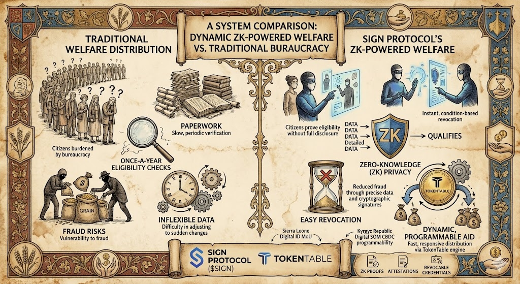 I’ve been going deep on infrastructure projects lately, and honestly, something with Sign Protocol $SIGN just hit different. This isn’t another DeFi farming narrative or some random meme coin play. It feels like real sovereign-grade tech that could actually solve one of the biggest headaches governments have: making welfare systems dynamic, fair, and efficient instead of the slow, broken mess they usually are.