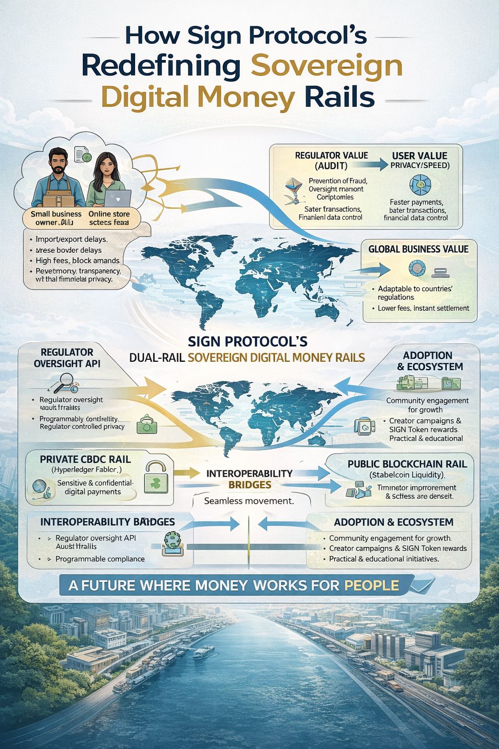 In conclusion, $SIGN Protocol’s dual-rail framework represents a significant step toward redefining how digital money operates at both national and global levels. By integrating privacy, compliance, and efficiency into a single cohesive system, it offers a practical pathway toward a more inclusive and resilient financial ecosystem—one where money moves seamlessly, securely, and intelligently across borders.#sing @sing