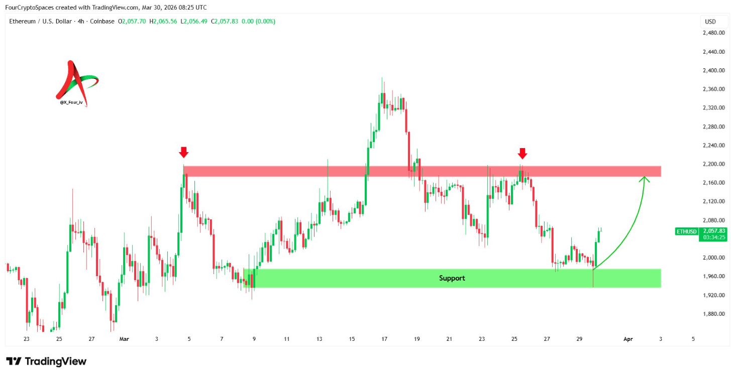 This aligns with broader market observations where the $2,000 region continues to act as a structural floor, with repeated defenses preventing deeper downside moves.