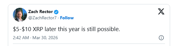 Crypto analyst Zach Rector argues that XRP still has a realistic path toward the $5 to $10 range by the end of 2026. His projection aligns with a growing narrative that links price appreciation to adoption and functionality rather than short-term market sentiment.