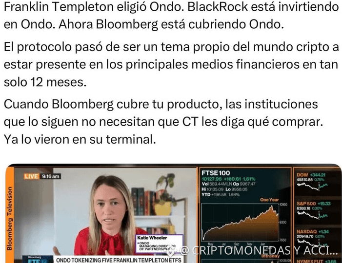 ¡Atención, comunidad! El sector de los RWA (Real World Assets) acaba de recibir su validación más fuerte en lo que va de 2026. Ayer, Ondo Finance fue el centro de atención en Bloomberg, confirmando su alianza estratégica con Franklin Templeton.