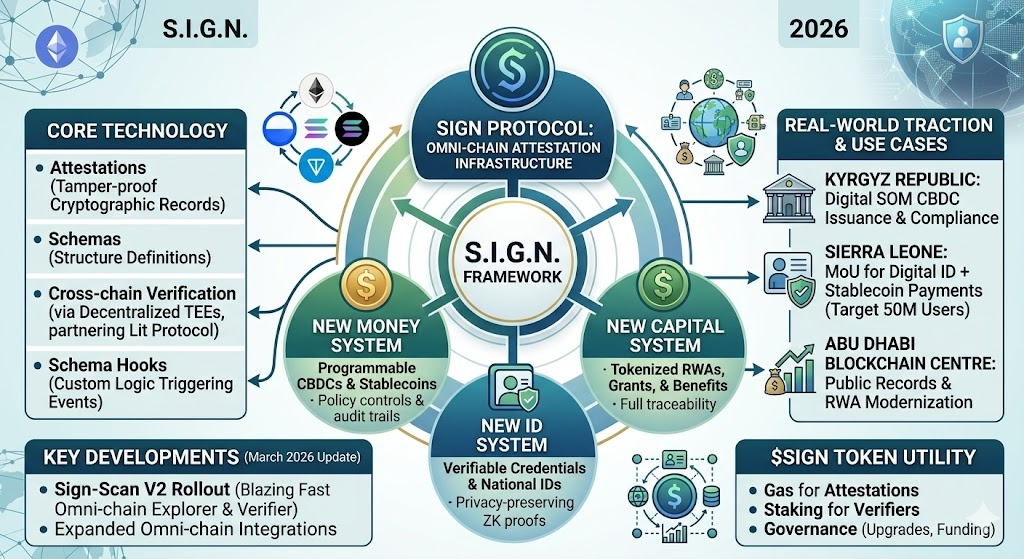 But here's the fresh 2026 subject everyone's sleeping on: the full S.I.G.N. rollout (Sovereign Infrastructure for Global Nations) and the March mainnet update with Sign-Scan V2. This isn't incremental. It's the protocol going from "cool Web3 tool" to the backbone of real sovereign digital economies. Docs just reframed everything around three core systems: