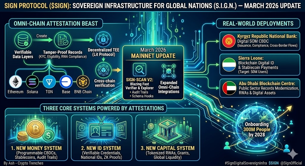 Hey Binance Square crew, If you've been sleeping on SIGN, this might be the post that wakes you up. We're talking about something that's not just another DeFi gimmick or meme coin pump—it's the infrastructure layer governments are actually using to go on-chain in 2026. Fresh off the March 20 mainnet update, Sign Protocol just dropped Sign-Scan V2 and doubled down on their S.I.G.N. sovereign framework. This isn't hype from some Twitter thread; I've been digging into the docs, partnerships, and real deployments for weeks. Buckle up—this is gonna be long, detailed, and 100% my raw take. Zero fluff, all signal.