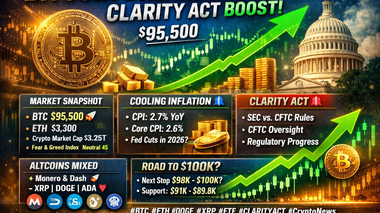 Crypto markets caught a strong bid on January 14, as Bitcoin and major altcoins extended gains following cooler U.S. inflation data and renewed optimism around the CLARITY Act — a potential game-changer for U.S. crypto regulation.