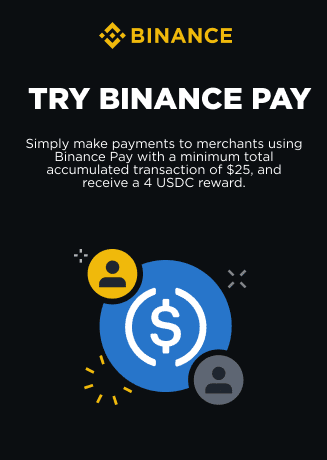 Simply make payments to merchants using Binance Pay with a minimum total accumulated transaction of $25, and receive a 4 USDC reward.