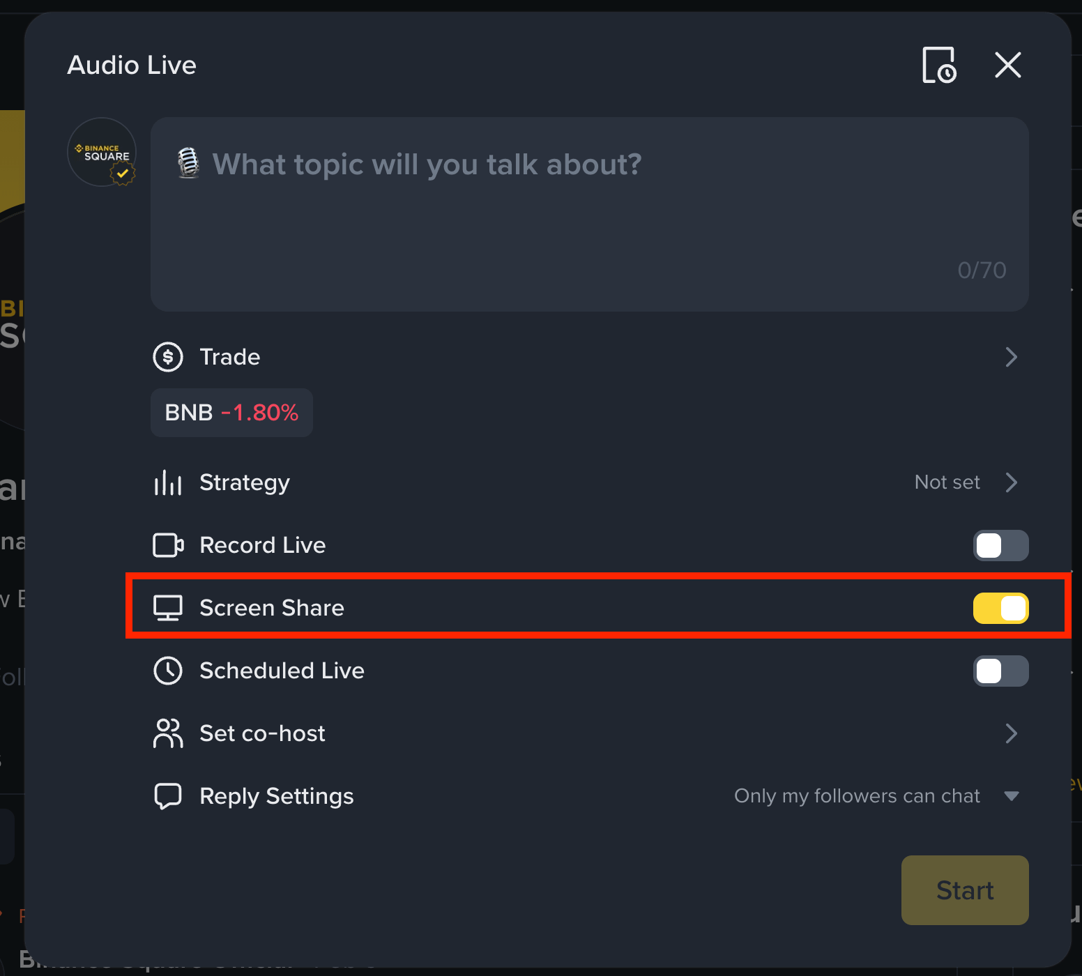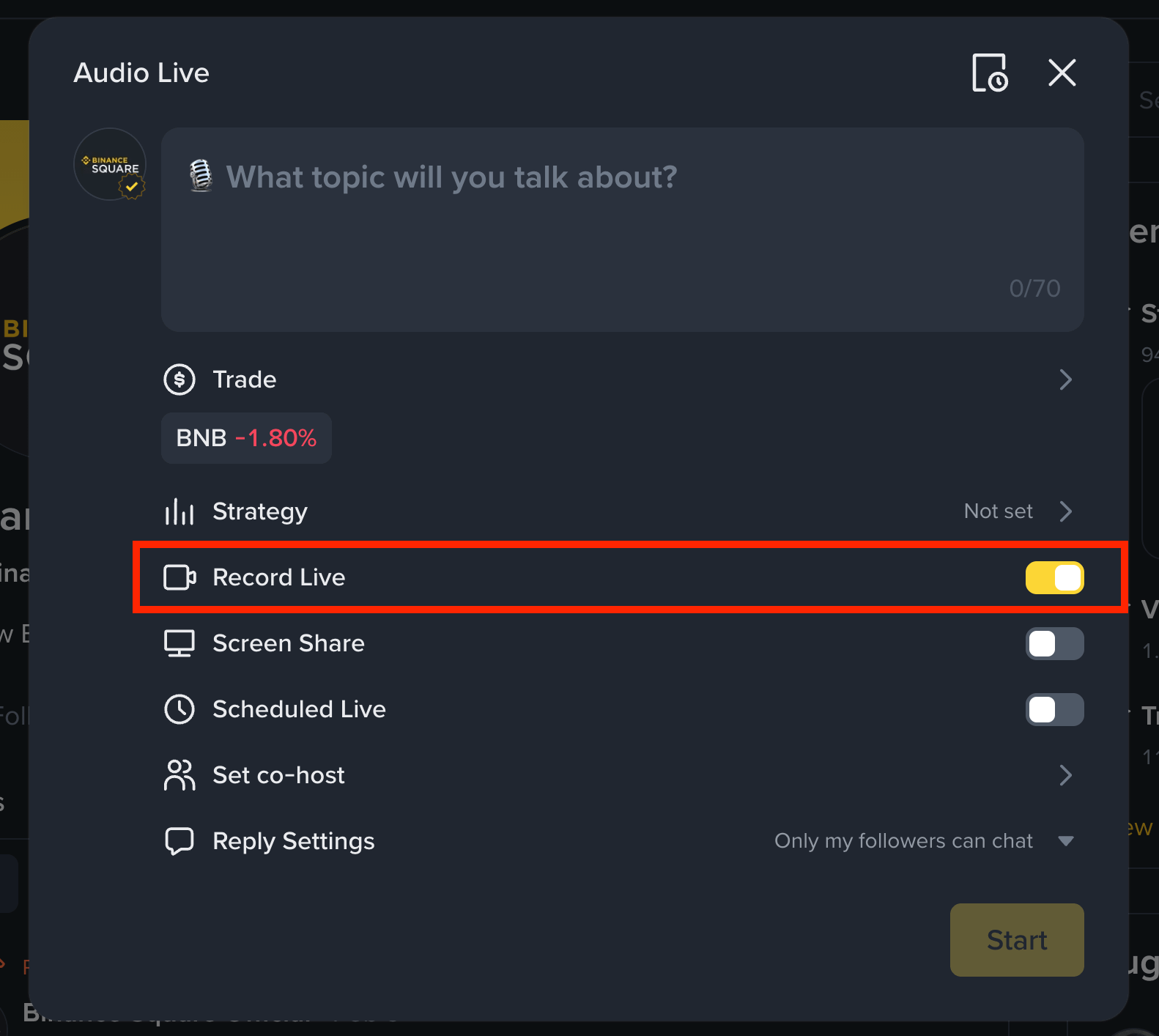 Binance Square now supports Audio Live (similar to X Space and Clubhouse) and Livestreams (similar to YouTube Lives and Twitch).