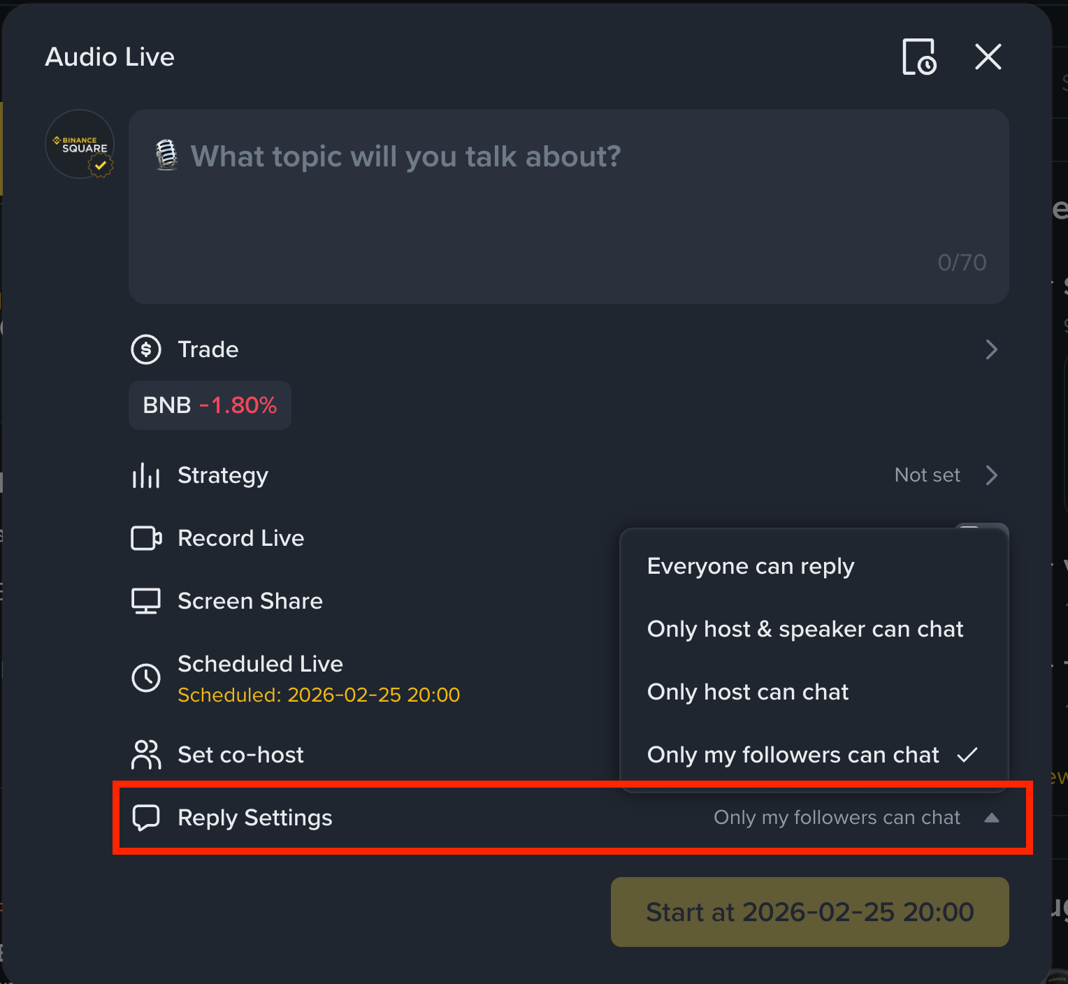 With a few taps you can launch and run a live stream on Binance Square, deepen community ties, and earn through token promotion.