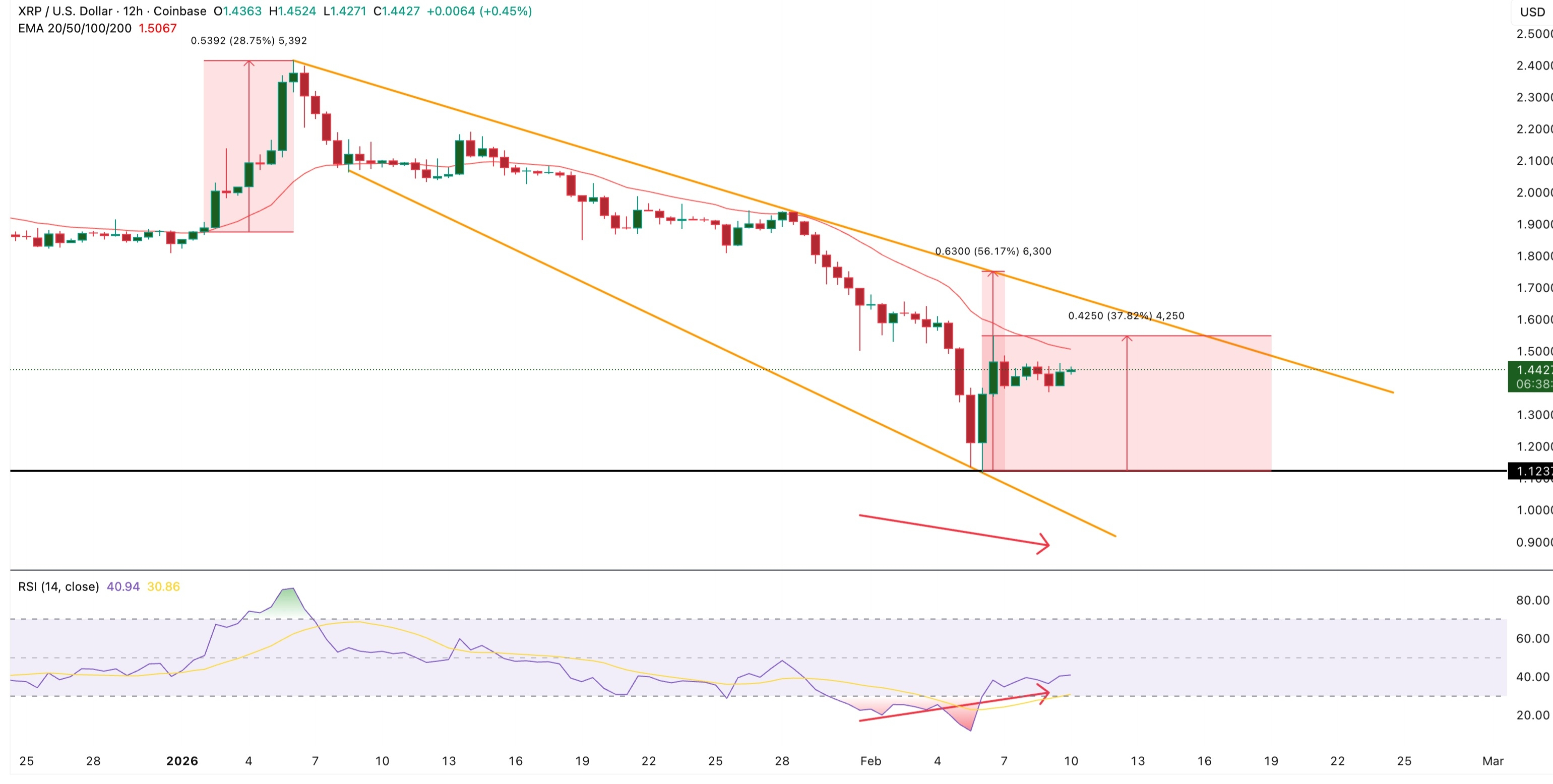 The XRP token quotes have recovered by more than 30% after bouncing off the local minimum in early February around $1.12. The momentum briefly returned the price to the $1.50 zone. Externally, the movement looked constructive. Momentum indicators improved. A reversal pattern began to form on the chart. Market participants started discussing a potential trend change.