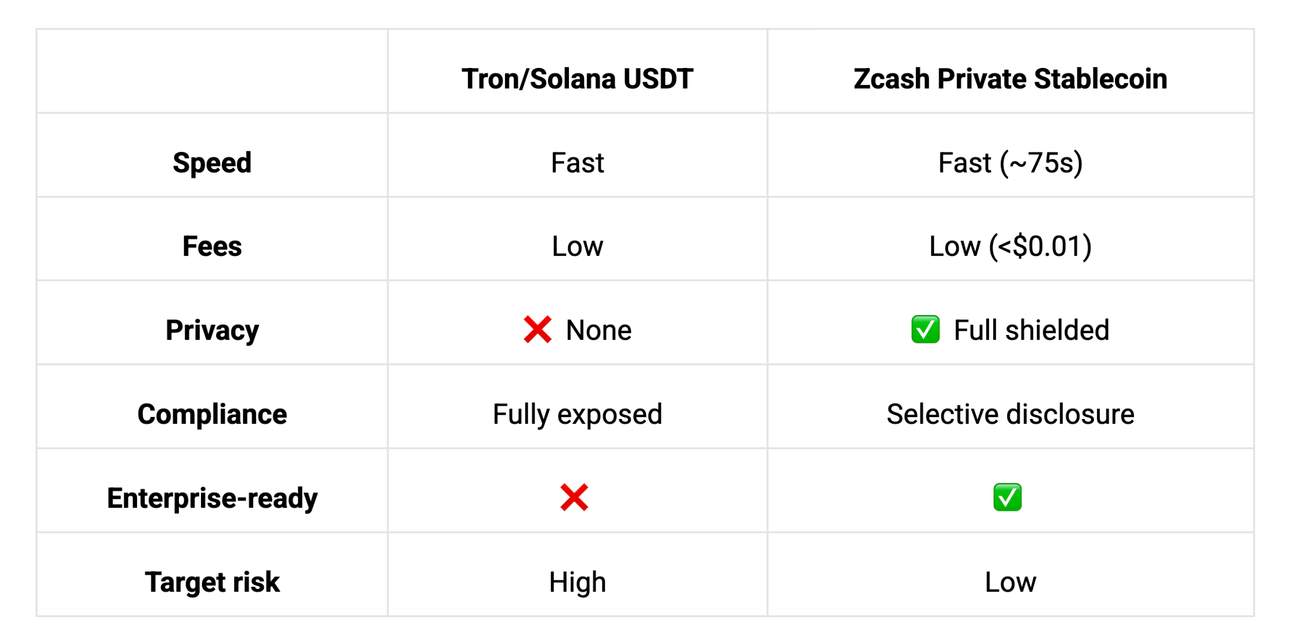 $ZEC is a great asset, but its volatility makes it unsuitable for these use cases. Every "privacy payment" use case is actually a "private stablecoin payment" use case.
