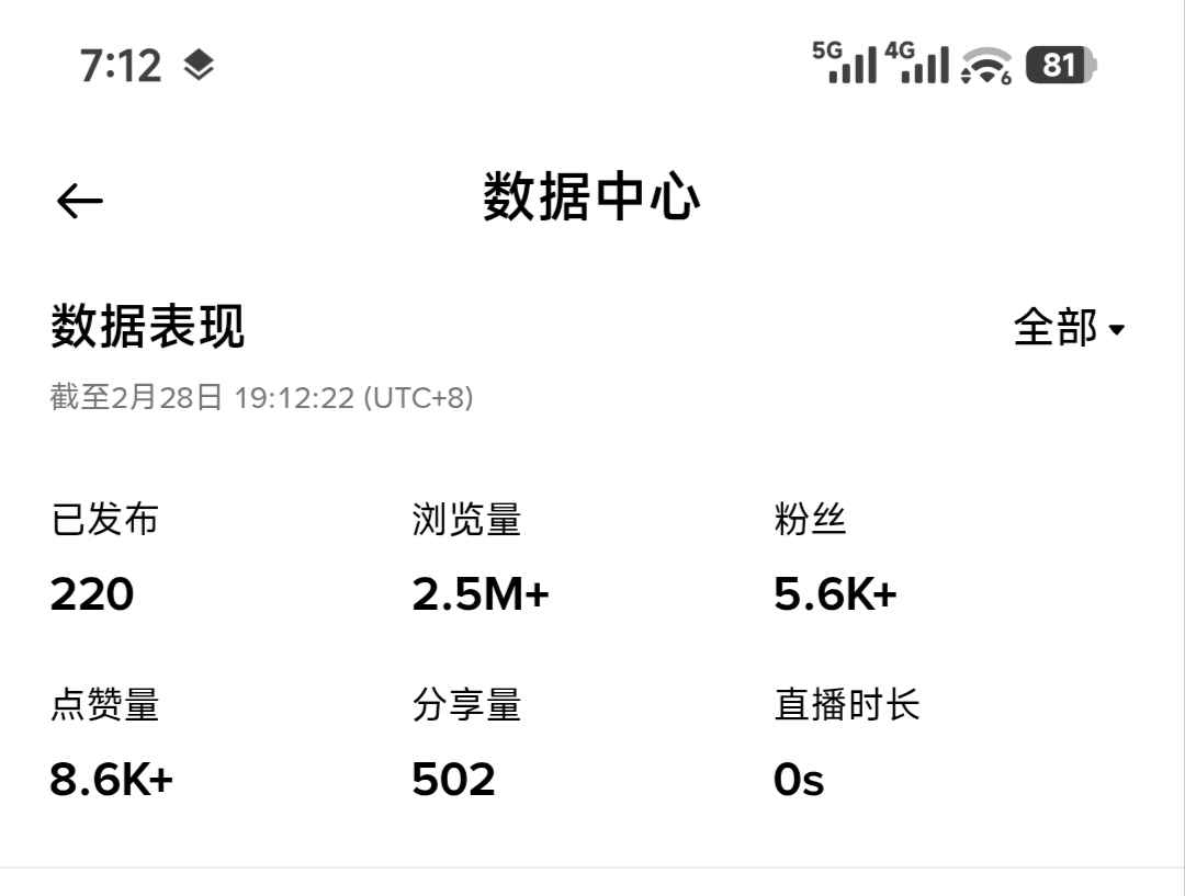 All data looks great: 220 pieces of content, achieving over 2.5M views, attracting more than 5,600 new friends, and receiving over 8.6K likes.