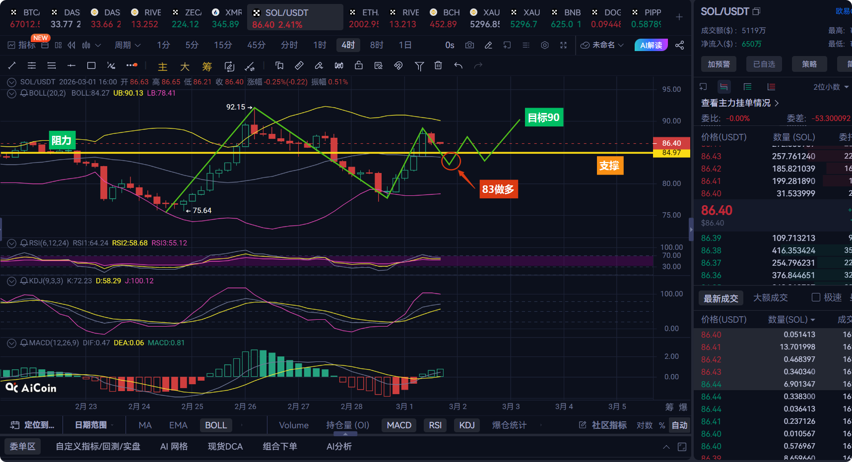 Next, we need to see if the support at 84.97 can hold. If it breaks, today’s rebound would be a trap for bulls; if it holds, 90 will be within reach. Want to know my specific take-profit and stop-loss levels next? Like and follow, and in the next video, I'll share the details; don't miss out!