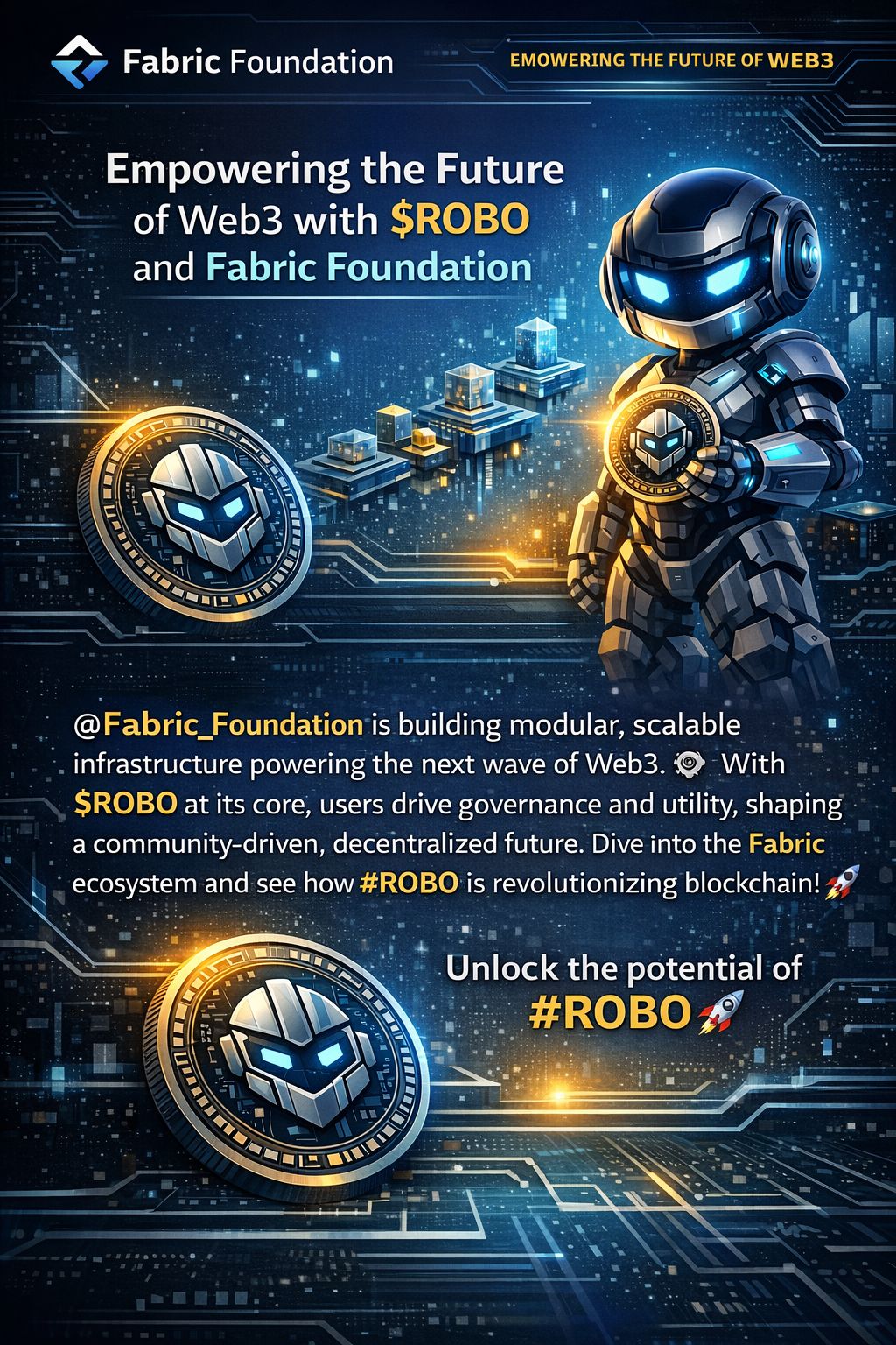 The @Fabric Foundation Fabric_Foundation is pioneering a new era in Web3 by creating modular and scalable infrastructure designed to empower developers, innovators, and the global blockchain community. Central to this ecosystem is $ROBO, a versatile token that drives governance, staking, and utility within the Fabric network. By holding and using $ROBO, users can actively participate in shaping platform decisions, support projects, and unlock premium features, creating a truly community-driven environment.