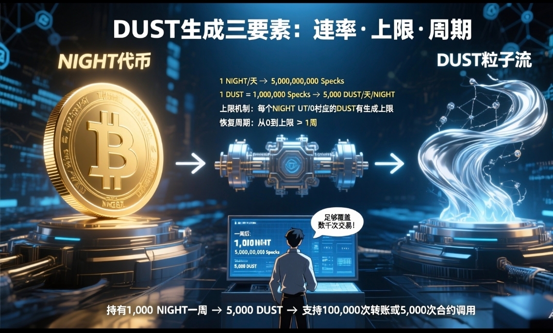 Everyone can understand it so easily. If you hold 1,000 NIGHT tokens, after a week, your DUST account will grow to about 5,000,000,000 Specks, which is equivalent to 5000 DUST (I converted it based on 1 DUST = 1000000 Specks). To put this number directly, many people might feel confused. Let me put it this way, this amount is completely enough to cover the thousands of ordinary transactions everyone usually makes.