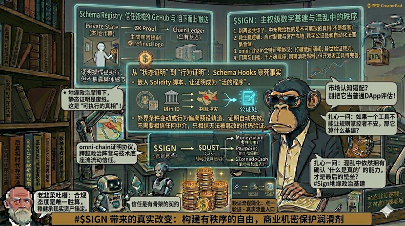大家对 Sign 的认知可能还停留在“链上签名”或者“电子合同”这种初级阶段。如果你还这么想,那说明你还没看懂它的白皮书里那个最硬核的玩意:Schema Hooks。