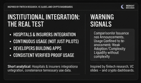 The market is gradually paying attention to this category of privacy infrastructure.Midnight Network, while still developing its broader ecosystem presence, has started to attract interest from communities focused on data protection and compliance-based systems. Token activity reflects early-stage participation rather than mature adoption, which is typical for infrastructure projects at this stage.Trading activity shows moderate but consistent engagement, suggesting that the project is being observed rather than heavily speculated on. Holder distribution appears to be expanding slowly, which often indicates organic discovery rather than rapid hype-driven inflows.From a broader perspective, privacy narratives tend to move in cycles. However, what is different here is the shift toward practical applications such as healthcare, finance, and identity systems. These sectors require more than theoretical privacy. They require usable frameworks.These early signals suggest that the market sees potential, but it has not yet fully priced in real-world adoption.But this is where the real test appears.The biggest challenge for Midnight Network is not whether the technology works. Privacy-preserving computation has been researched for years. The challenge is whether institutions will actually integrate it into their workflows.The key metric here is real usage in regulated environments.Healthcare systems are complex. They involve legal compliance, legacy infrastructure, and multiple stakeholders. Even if a privacy solution is technically superior, adoption depends on how easily it fits into existing processes.If hospitals and insurers do not use these selective disclosure proofs regularly, the system does not create meaningful impact.