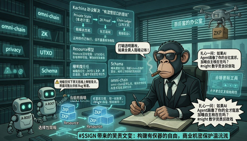 很多人还在复读那些过时的白皮书段子,其实 Midnight 核心最硬核的地方在于那个叫 Kachina 的底层协议。这玩意儿在技术圈以外很少有人提,但它才是 @MidnightNetwork 能跑通商业逻辑的关键。简单来说,以前的隐私合约像是一个密封的保险柜,你要么不开,一开大家都能看见里面有啥。Kachina 搞的是一种“屏蔽状态机”,它允许你在不公开全局状态的情况下,完成私密合约的变更。这就像你在闹市区跟人谈生意,围观的人能看到你们签了合同,但合同上的金额、条款甚至是跟谁签的,只有你们两个知道。这种“状态隔离”的手段,比单纯的混币逻辑高级了不止一个段位。