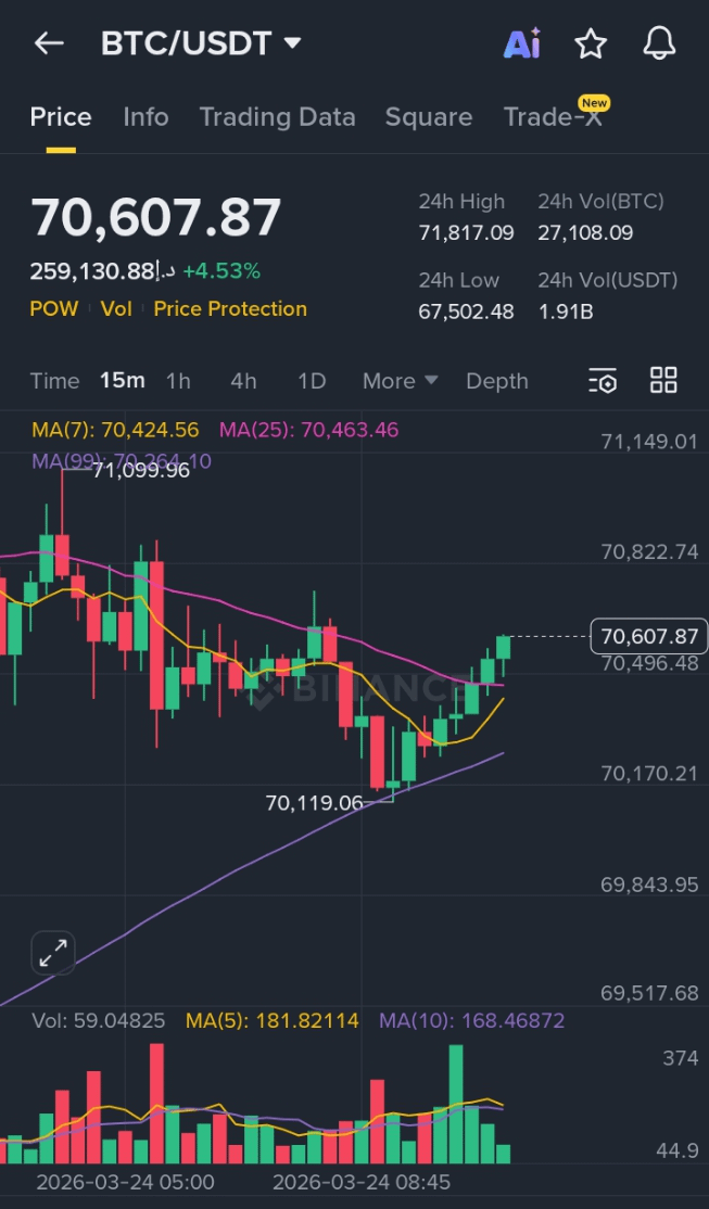The global crypto market is showing early signs of stabilization after a turbulent phase driven by macroeconomic pressure and geopolitical uncertainty. Bitcoin ($BTC ) is currently trading near the $70K mark after briefly dipping below key support levels earlier this week. The recovery comes as investor sentiment improves slightly, although volatility remains elevated. Ethereum ($ETH ) is also holding steady above the $2,000 level, signaling resilience among major assets despite recent market shocks.