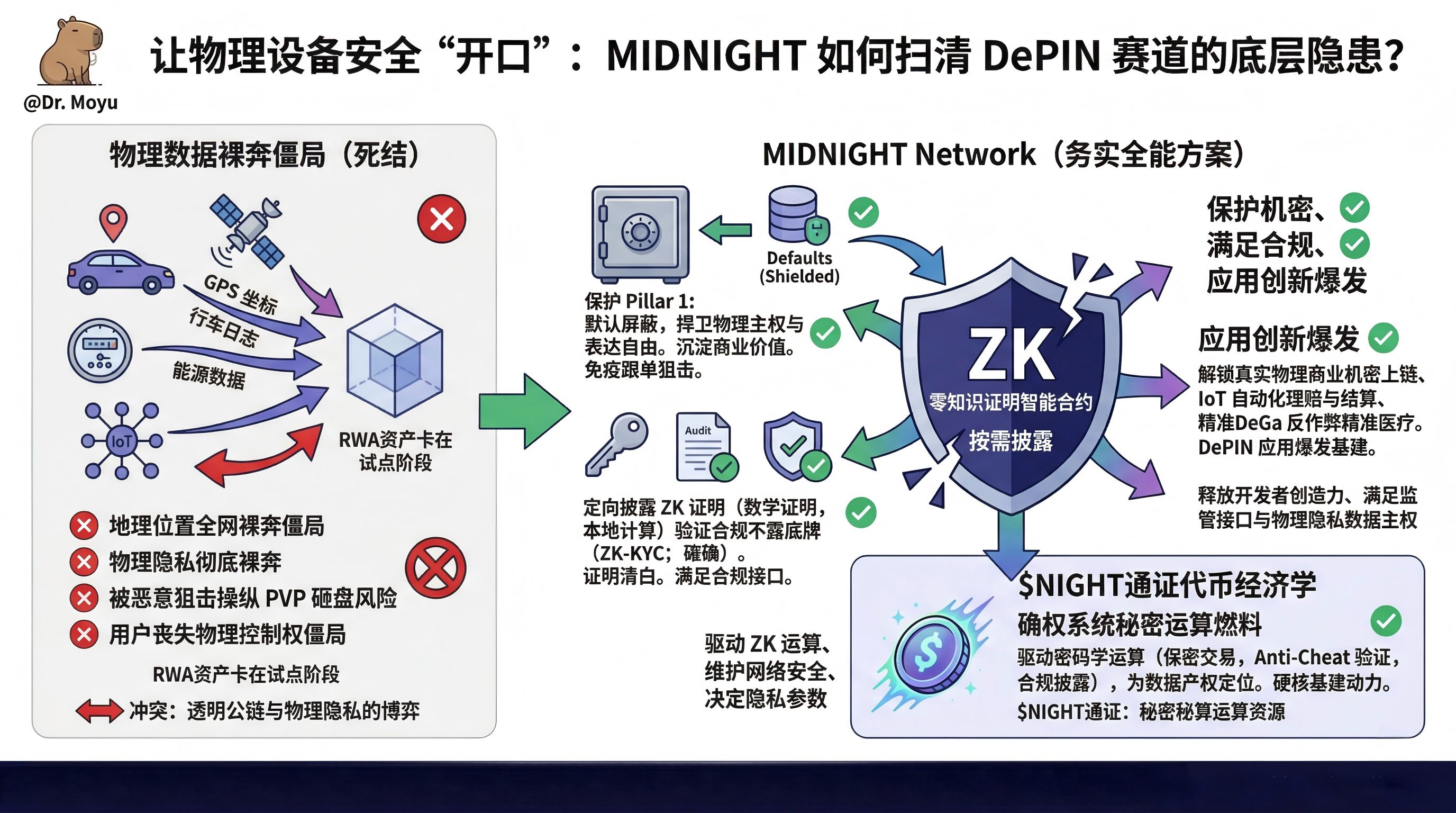 The technical entry point of Midnight Network @MidnightNetwork perfectly fills the fatal shortcoming of this track. Relying on its underlying programmable zero-knowledge proof (ZK) architecture, Midnight allows physical devices to achieve "data available but invisible."