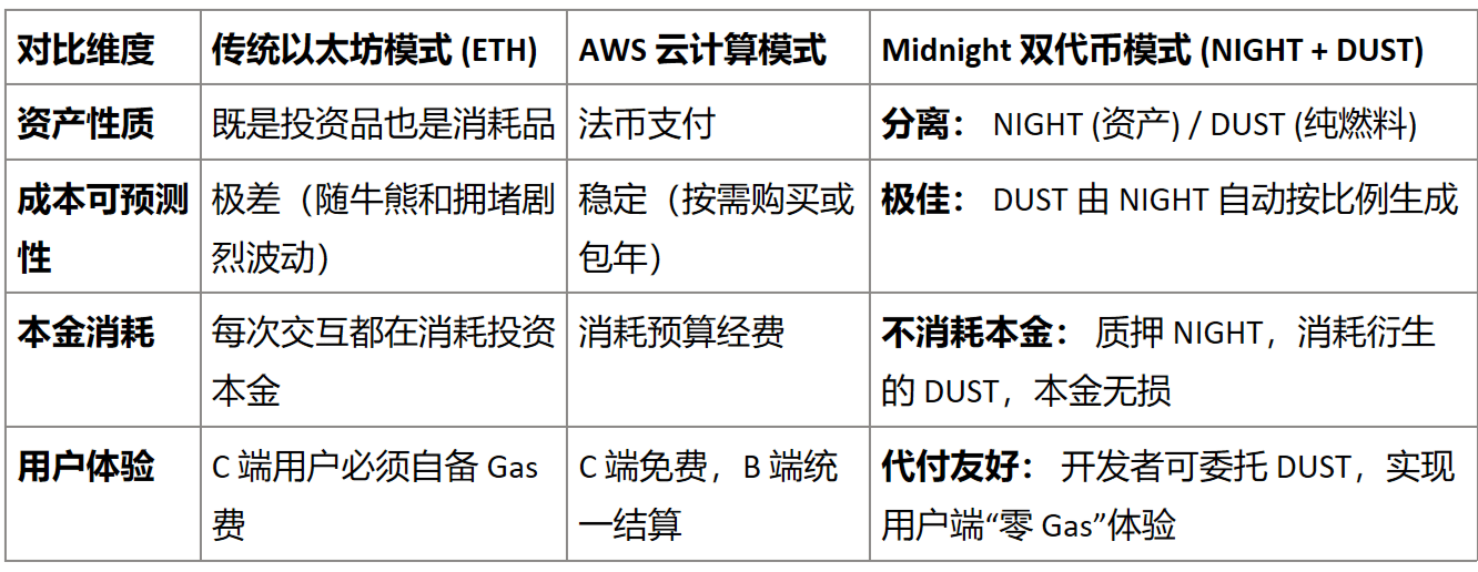 Midnight's unique NIGHT + DUST dual-token model, rather than solving compliance issues, is more about a complete subversion of the traditional Gas model in Web3; it resembles a SaaS subscription model in cloud computing.
