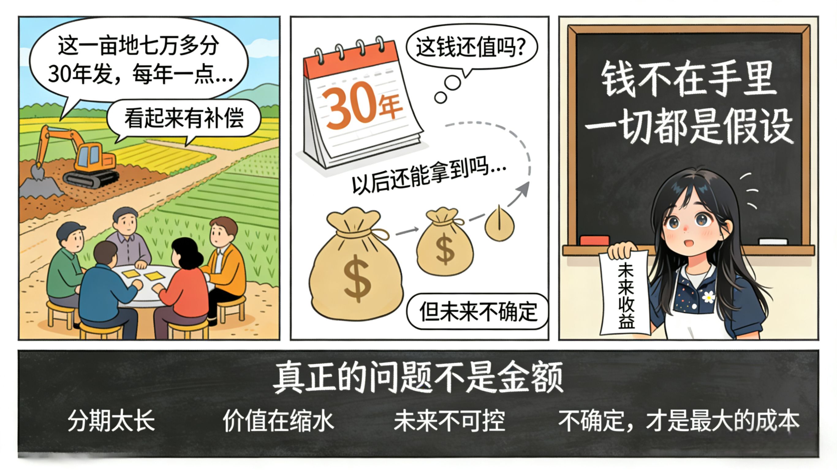Getting a little each year seems 'stable', but the problem is—will the money devalue over these 30 years? Will policies change? Will it still be paid on time?
