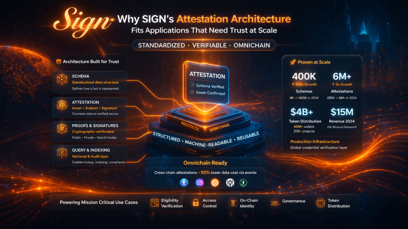 More importantly, strong architecture needs real traction behind it. Binance Research reported that in 2024 schema adoption on Sign Protocol grew from 4,000 to 400,000 while the number of attestations increased from 685,000 to more than 6 million. On the commercial side, TokenTable distributed more than 4 billion dollars in tokens to over 40 million wallets across 200 plus projects. Binance Research also reported around 15 million dollars in revenue for 2024. These numbers suggest that SIGN does not just have an elegant architecture on paper. It has already shown that its attestation model is practical enough to support trust at meaningful scale.