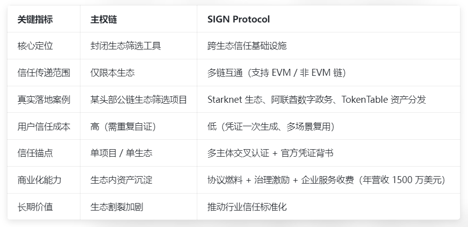 The ultimate outcome of the industry will not be a single model winning, but rather a combination of 'sovereign chains + SIGN' — sovereign chains are responsible for refined operations within the ecosystem, while SIGN is responsible for the flow of trust across ecosystems.