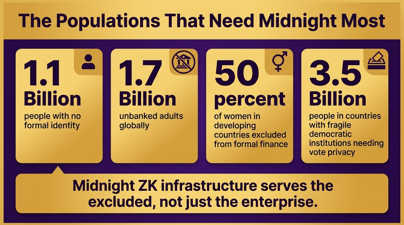 Midnight's white paper specifically mentions balloting as a use case. Creating fraud resistant preference reporting systems that can prove eligibility and participation status without disclosing individual choice. In mature democracies this is nice to have. In countries where political affiliation can result in violence, where election fraud is endemic, where people are afraid to vote freely because their vote can be traced back to them, this is potentially transformational.