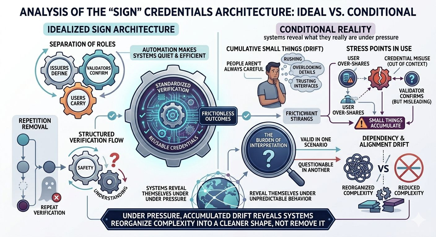 I keep looping back to the same question: does Sign reduce complexity, or does it just reorganize it into a cleaner shape?