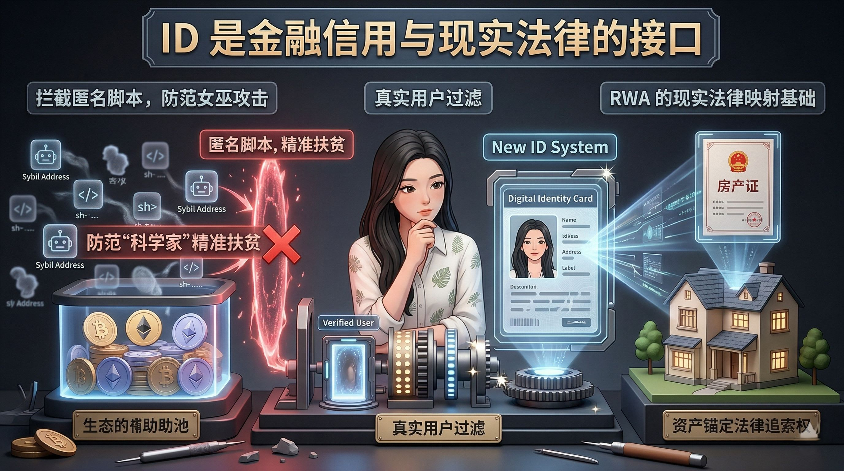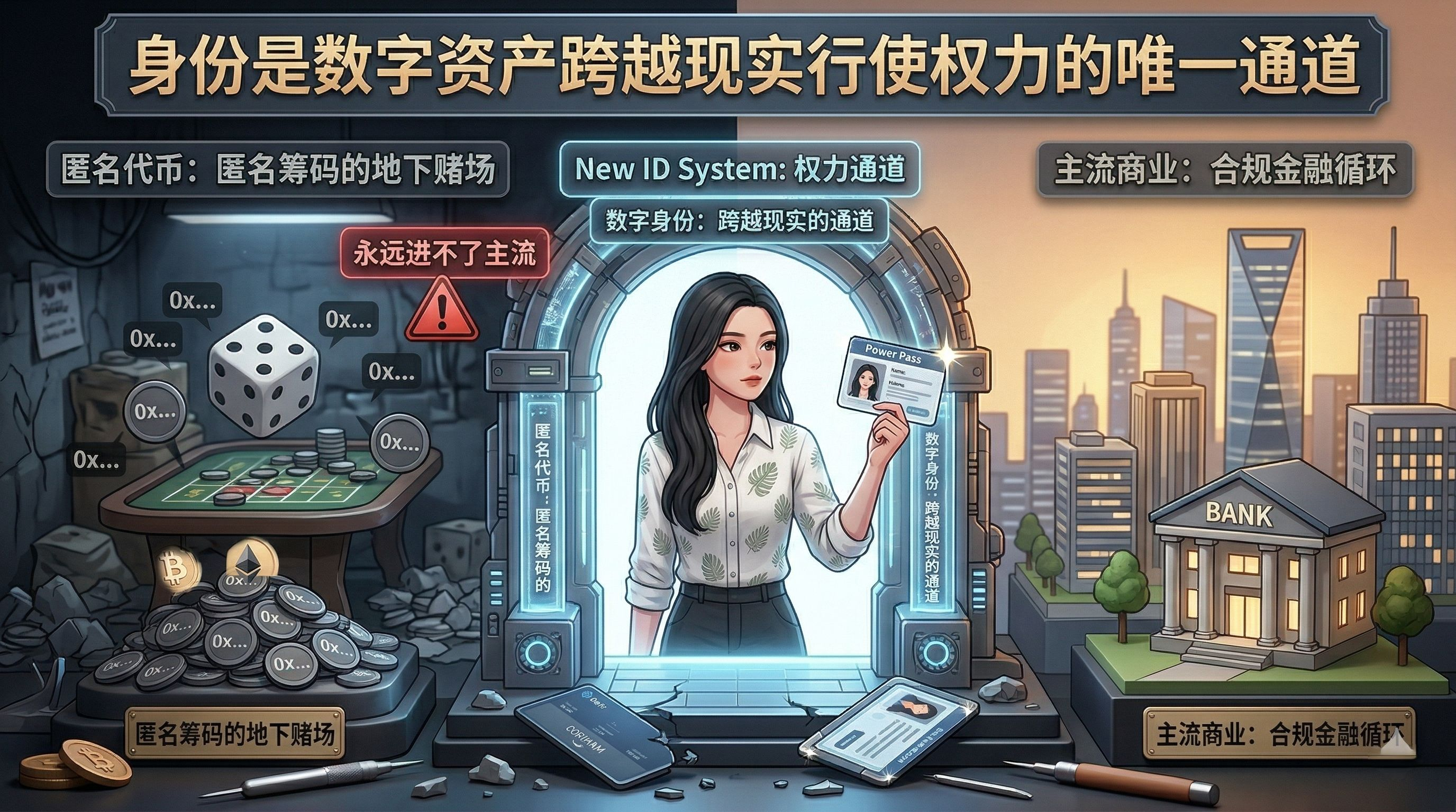 If there is not a prior identity layer that can anchor the on-chain address to some real-world credit or reputation, all subsequent financial payments and RWA (Real World Assets) narratives are just self-deceptive castles in the air. At most, it's an underground casino for anonymous chips, never able to enter the mainstream business cycle. Identity is the only channel through which digital assets can truly cross over into reality to exercise power.