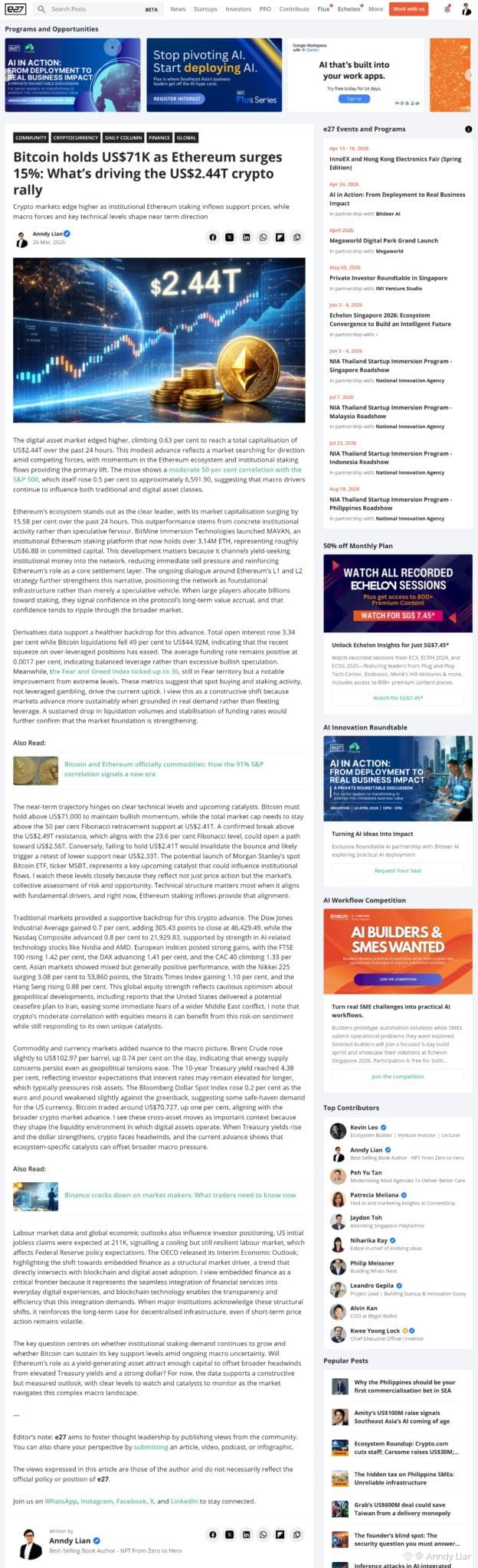 Source: https://e27.co/bitcoin-holds-us71k-as-ethereum-surges-15-whats-driving-the-us2-44t-crypto-rally-20260326/