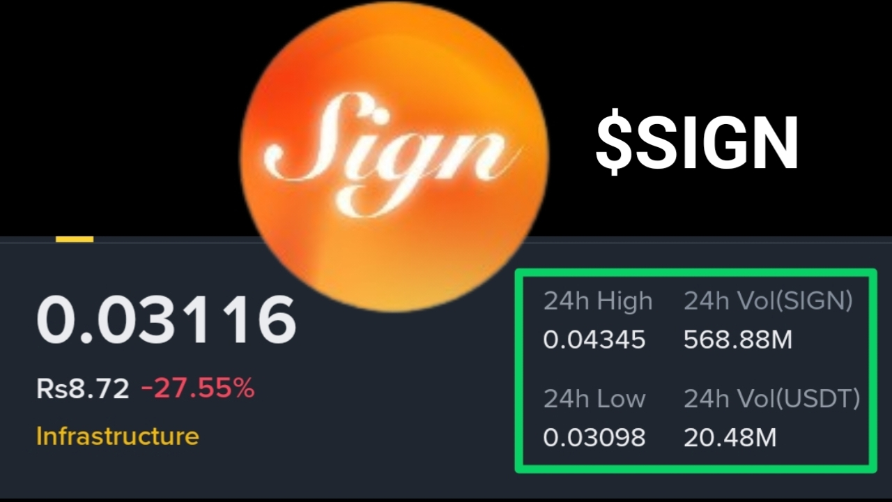 The market for $SIGN is already seeing action, as we can see from the recent data: $SIGN’s price dropped by 27.55% in the past 24 hours, currently sitting at $0.03116 with a 24h volume of 568.88M SIGN. Despite this dip, it highlights the volatile nature of emerging infrastructure tokens. However, it’s also clear that the token's high liquidity shows strong interest, and the potential for future recovery could align with the rise of digital infrastructure solutions like $SIGN.