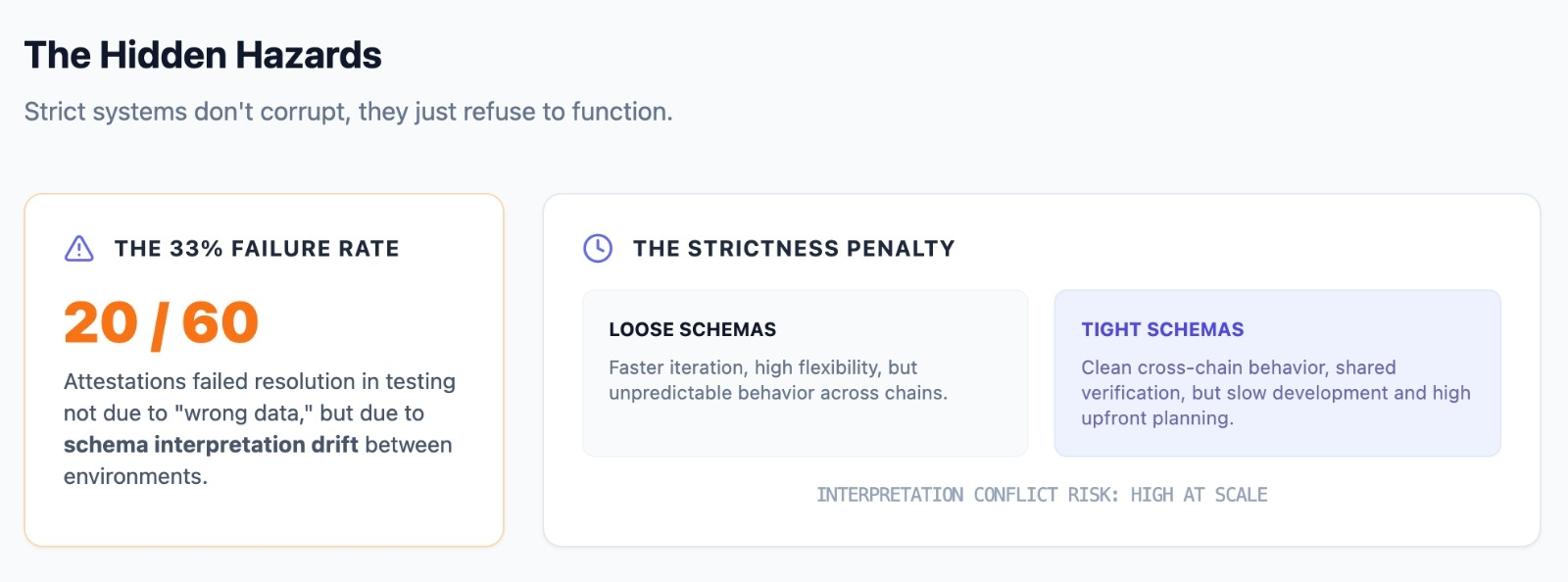 Or go the other way. Lock the schema tightly. Enforce strict validation everywhere. You’ll get cleaner cross-chain behavior, but you’ll also feel the slowdown in development. More planning. More coordination. Less flexibility.