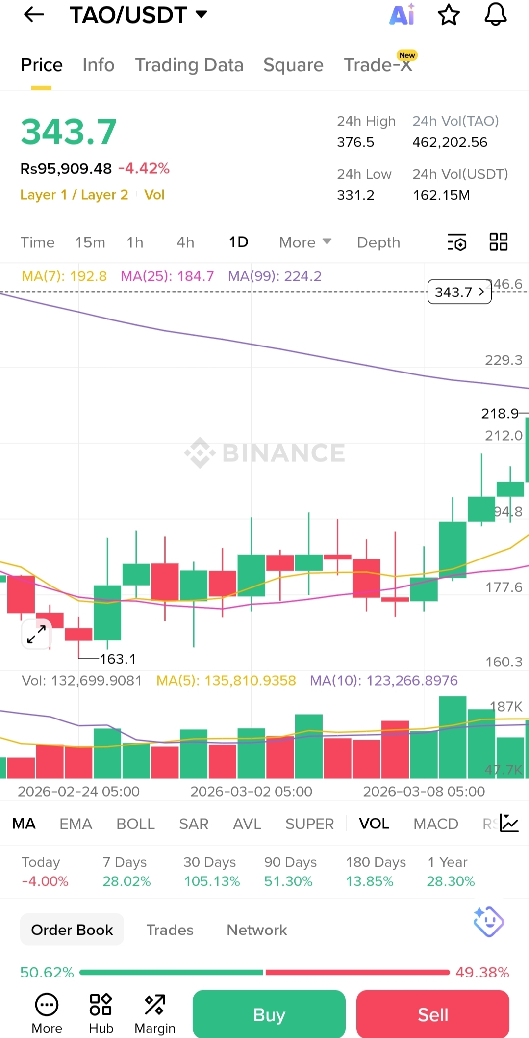 Buy pressure: ~50.62%