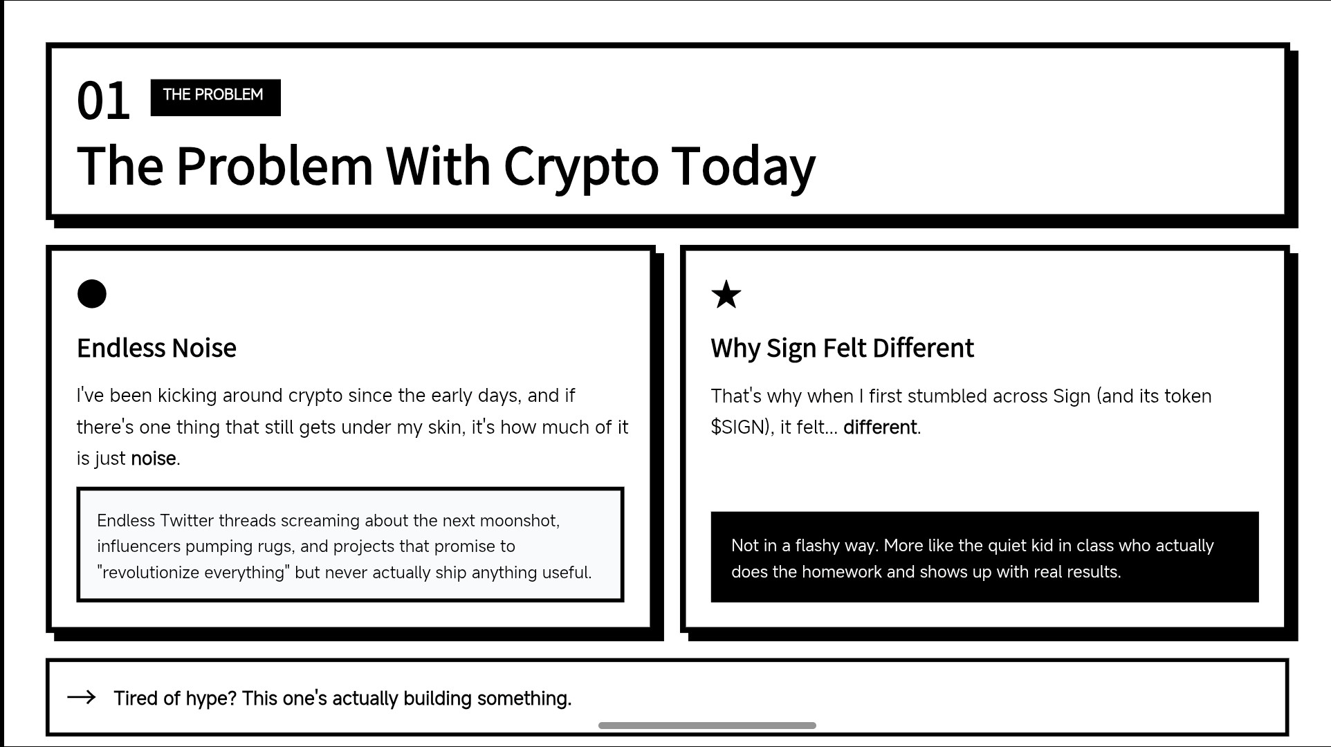 Look, I’ve been kicking around crypto since the early days, and if there’s one thing that still gets under my skin, it’s how much of it is just noise. Endless Twitter threads screaming about the next moonshot, influencers pumping rugs, and projects that promise to “revolutionize everything” but never actually ship anything useful. That’s why when I first stumbled across Sign (and its token $SIGN), it felt... different. Not in a flashy way. More like the quiet kid in class who actually does the homework and shows up with real results.