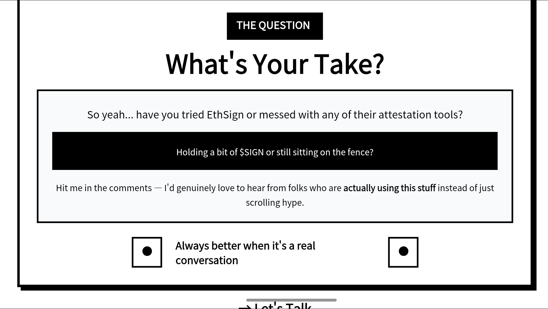 So yeah... what’s your take? Have you tried EthSign or messed with any of their attestation tools? Holding a bit of $SIGN or still sitting on the fence? Hit me in the comments — I’d genuinely love to hear from folks who are actually using this stuff instead of just scrolling hype. Always better when it’s a real conversation.