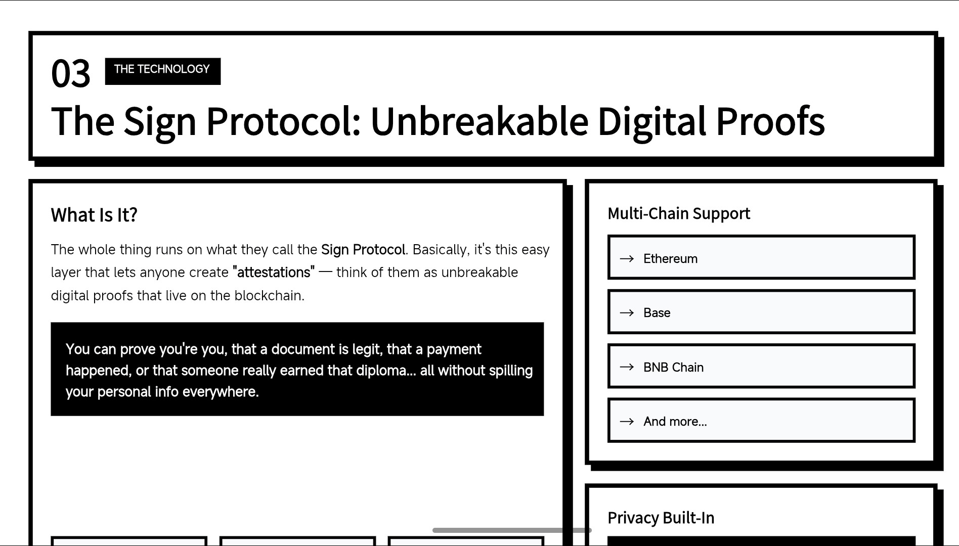 The whole thing runs on what they call the Sign Protocol. Basically, it’s this easy layer that lets anyone create “attestations” — think of them as unbreakable digital proofs that live on the blockchain. You can prove you’re you, that a document is legit, that a payment happened, or that someone really earned that diploma... all without spilling your personal info everywhere. It works on Ethereum, Base, BNB Chain, you name it, and they’ve baked in privacy stuff like zero-knowledge proofs so it doesn’t feel creepy.