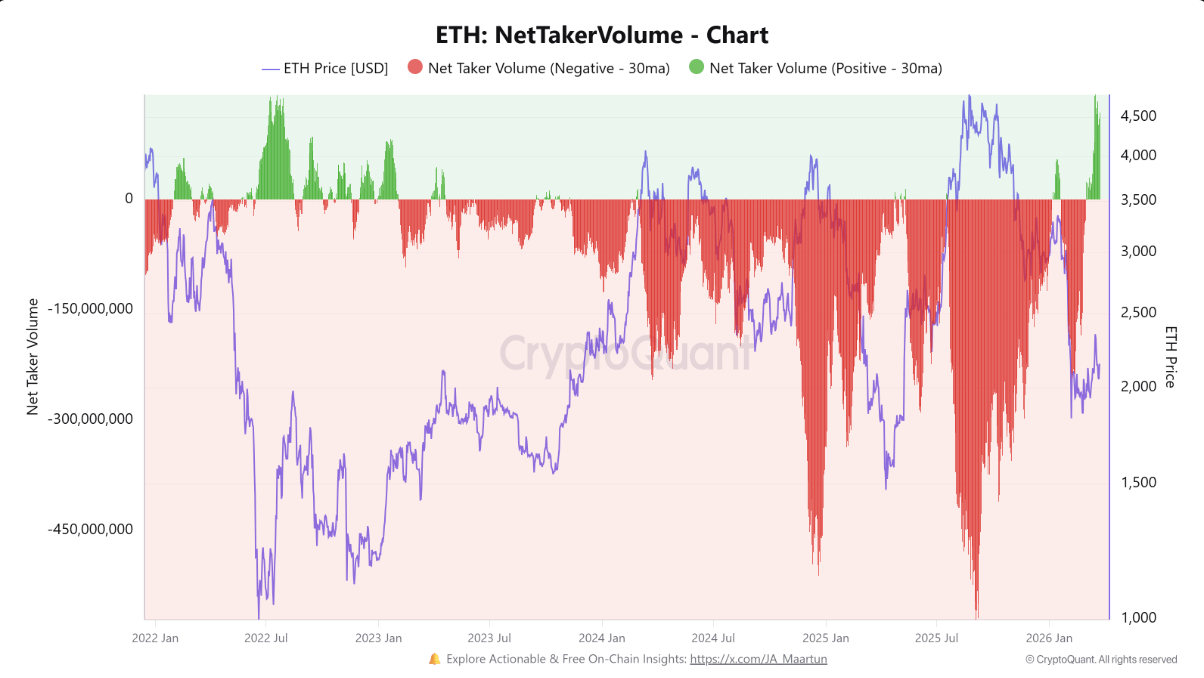 On the contrary, the group of retail investors – who have continuously sold for many weeks – has recorded almost no significant changes in balances over the past week. At the same time, proactive buying in the derivatives market is dominant as the Net Taker Volume of ETH futures contracts reached +133 million USD in recent days.