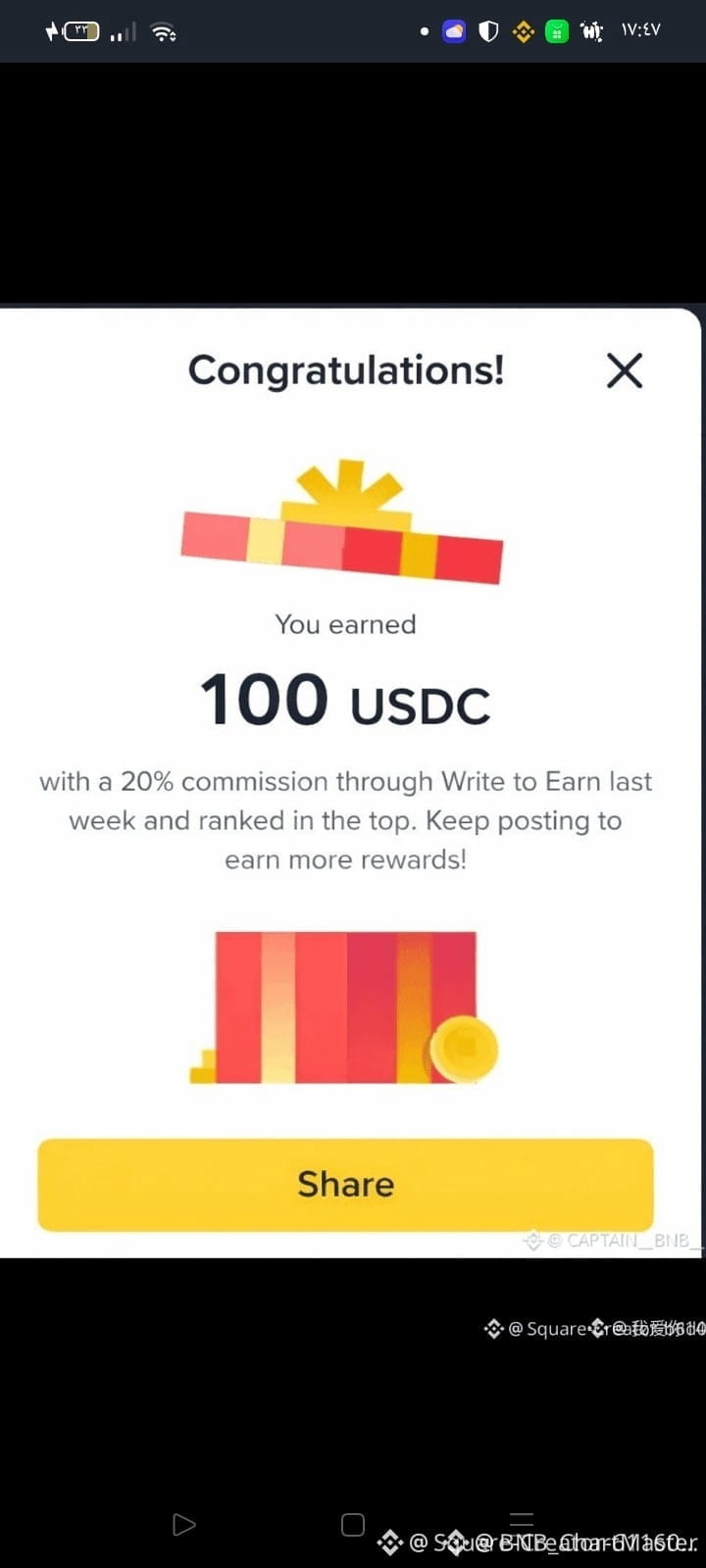 إذا حصلت على نسبة 0.5% من مجموع النقاط → ستحصل على حوالي 250 USDT